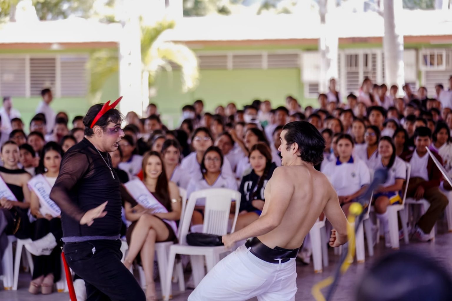 Un momento especial fue la participación de las aspirantes al trono real: Marbella Medina, Marbella Rivera, Danya Moreno y Andrea García, junto con Guillermo Orrante, aspirante al rey de Carnaval, y Brayan Gamboa, el actual soberano. Estas personalidades se dirigieron a los estudiantes con palabras motivacionales, inspirándolos a soñar en grande y a seguir sus pasiones.