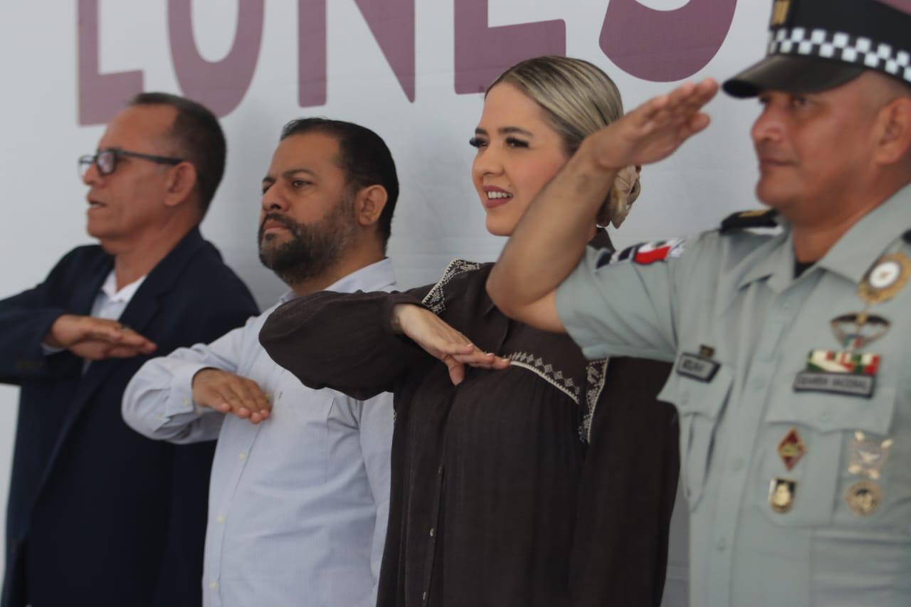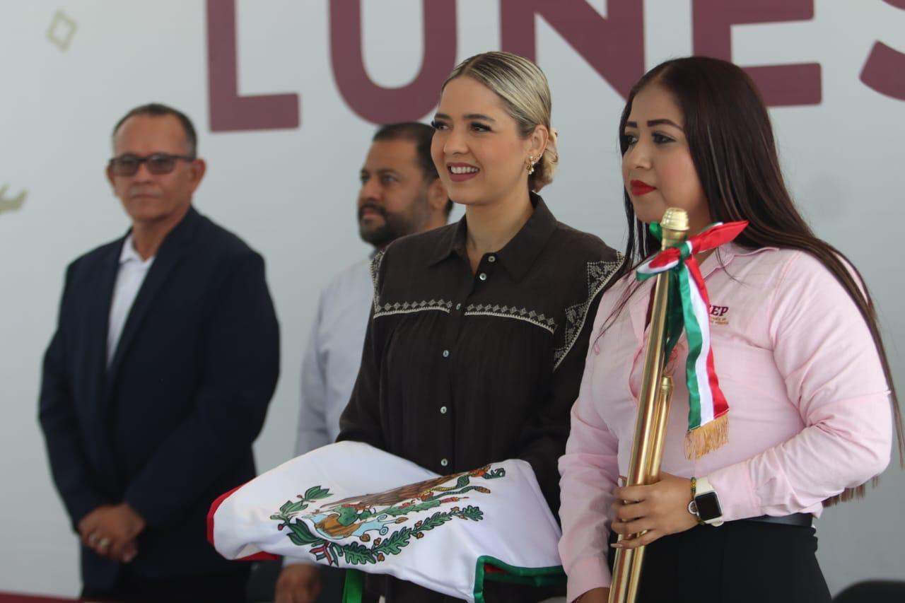 La Presidenta Municipal encabeza el último Lunes Cívico del año en la escuela de la comunidad, perteneciente a la sindicatura de El Roble