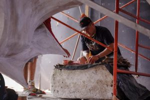 Con un equipo de casi 20 artesanos y artistas, la elaboración avanza en tiempo y forma, utilizando una mezcla magistral de materiales tradicionales y técnicas europeas.