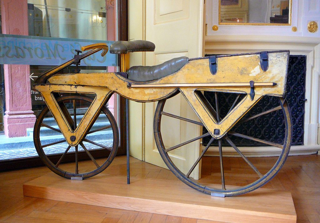 Esta registrado que, la primera bicicleta fue inventada en 1817 por el barón alemán, Karl Frederic Drais, y fue nombrada en ese entonces como Drasiana “Maquina Andante” (Laufmaschine), fue fabricada de madera y carecía de pedales, y avanzaba impulsándose con los pies contra el suelo