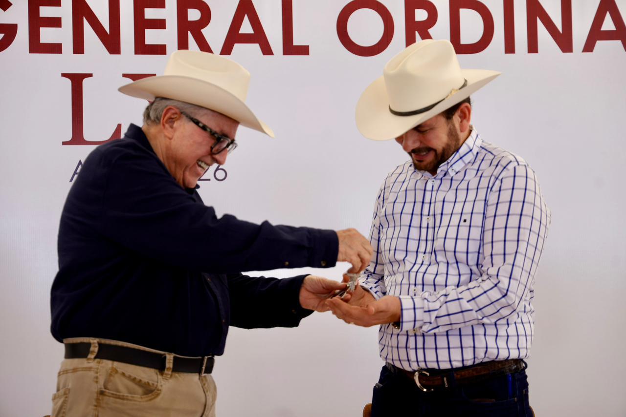 El mandatario estatal acudió como invitado especial al informe de labores de José Alfredo Sáinz Aispuro, actual presidente de la UGRS, a quien le hizo entrega de los apoyos prometidos en la pasada Feria Ganadera.
