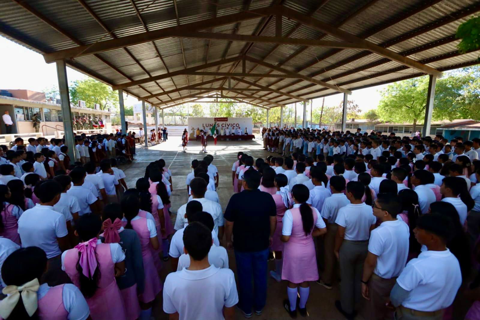 Mazatlán, Sinaloa, 20 de abril de 2026.- La seguridad en las escuelas empieza por tener un espacio bien resguardado para que puedan aprender y seguir desarrollándose en libertad los estudiantes, precisó la Presidenta Municipal, Estrella Palacios Domínguez, durante el Lunes Cívico que realizó el Ayuntamiento en la Escuela Secundaria General número 4 Mariano Escobedo, ubicada en la colonia Ampliación Ricardo Flores Magón.